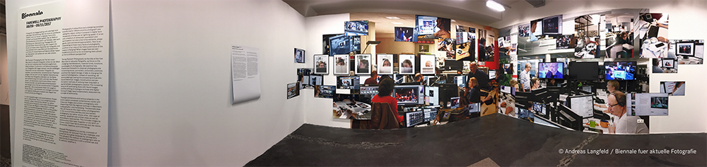 Cette installation est présentée aux visiteurs de la Biennale dans un espace recréant l'atmosphère d'un service photo avec des images montrant les rédactions, et des écrans diffusant notamment le fil photo de l'AFP.